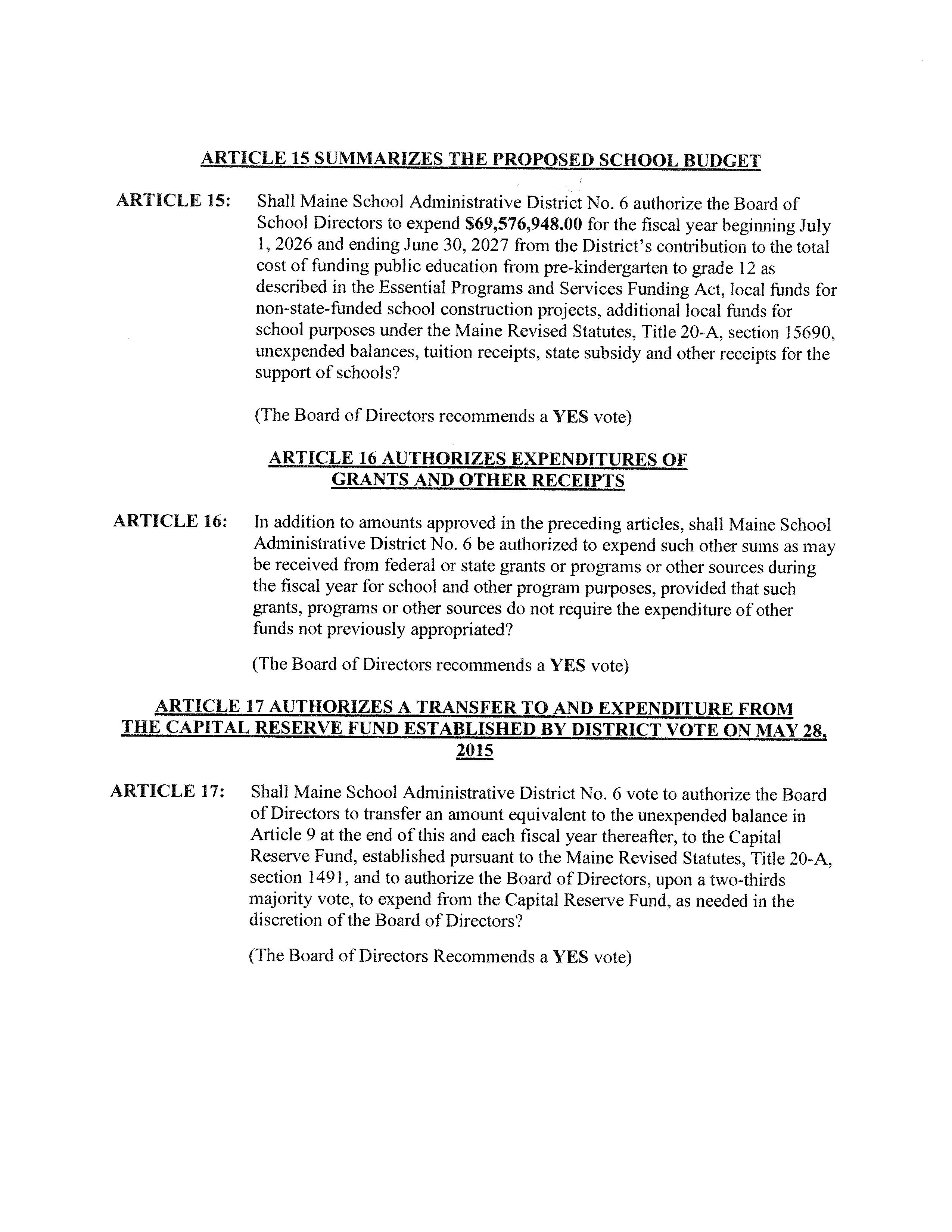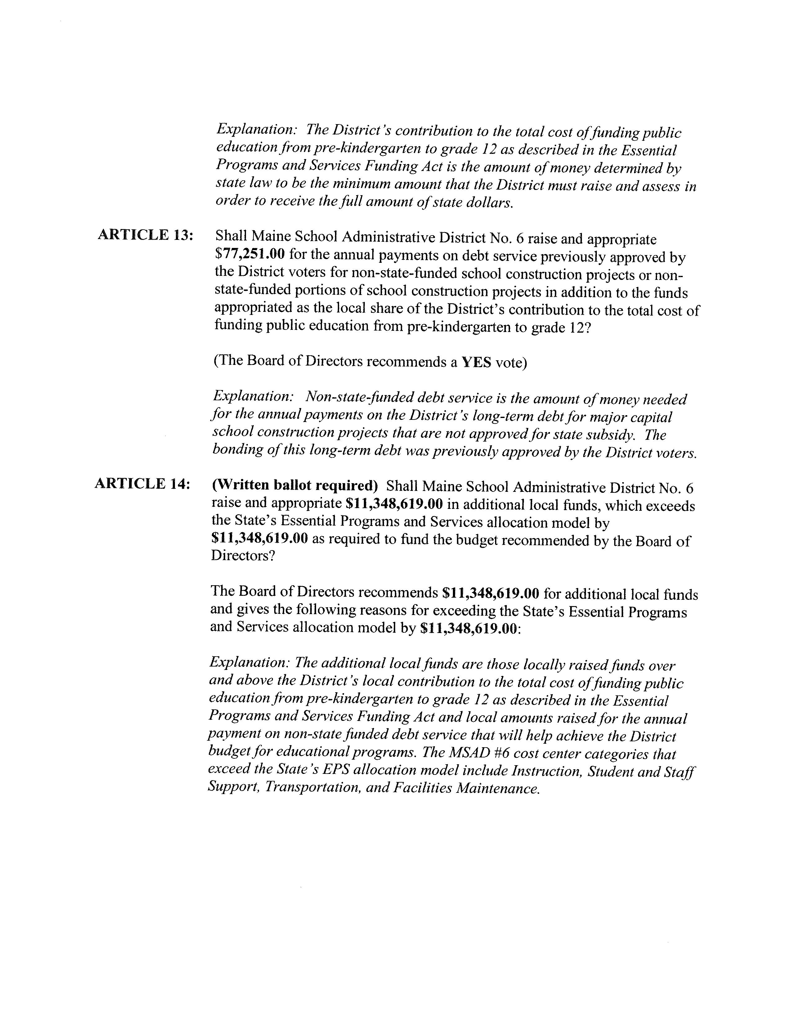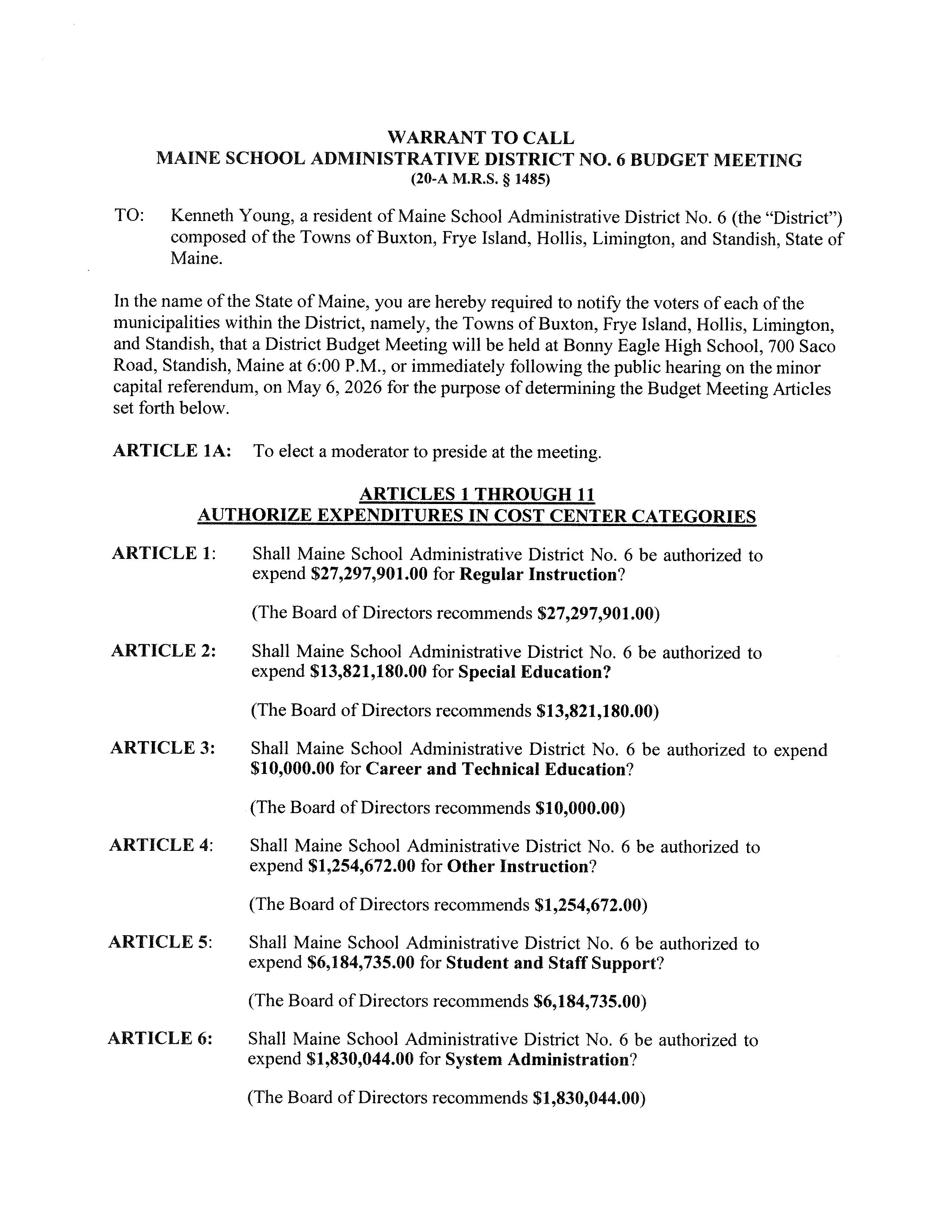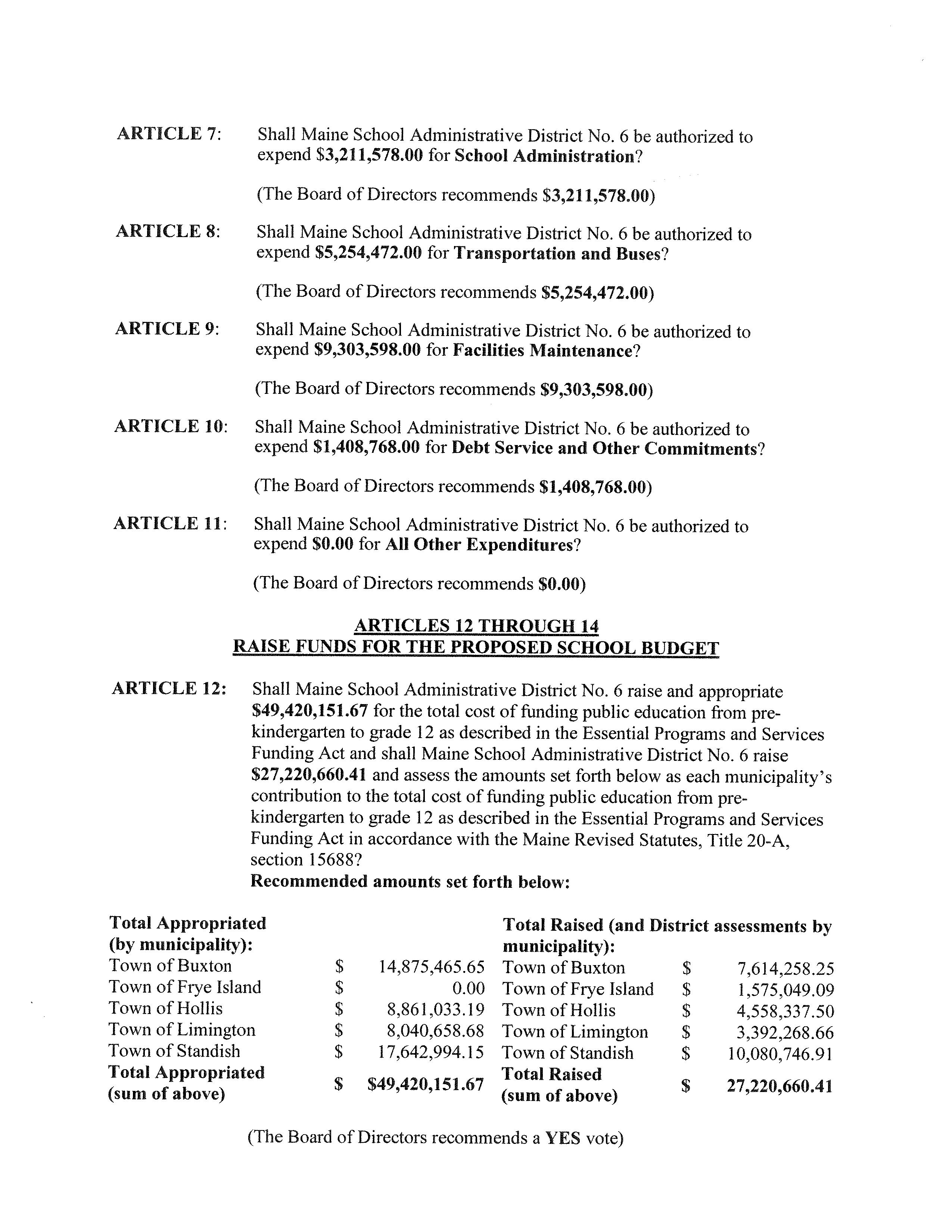 MSAD #6 District Budget Meeting