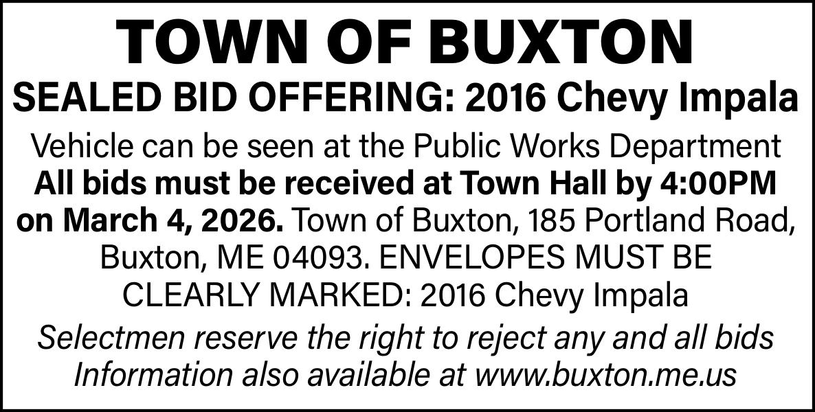 All bids must be received at Town Hall by 4:00 PM on March 4th, 2026.